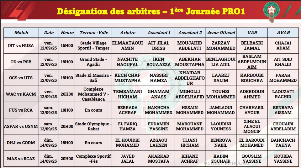 شاركها فيسبوك تويتر لينكدإن بينتيريست البريد الإلكتروني Copy Link أفرجت الجامعة الملكية لكرة القدم عن لائحة تعيينات حكام الجولة الاولى من البطولة الاحترافية INWI1 الدوري الاحترافي الأول العصبة الوطنية لكرة القدم